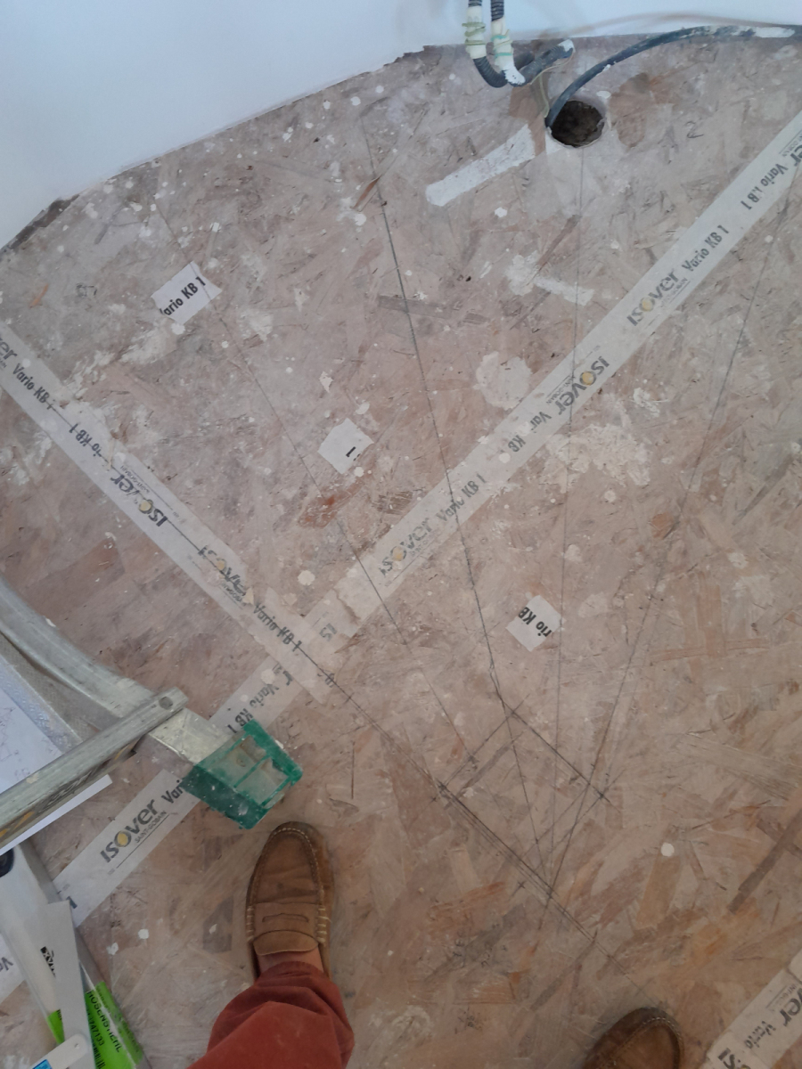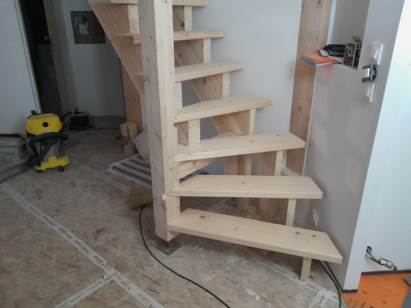 La réalisation de cet escalier a dû satisfaire plusieurs contraintes de forme avec, non pas un quart tournant, mais un sixième et ce dans un espace réduit d’où une pente assez forte.