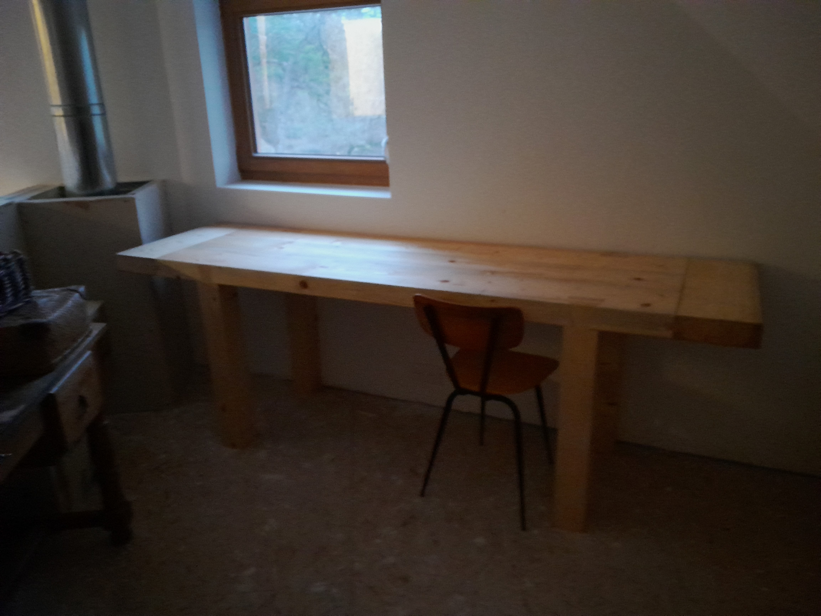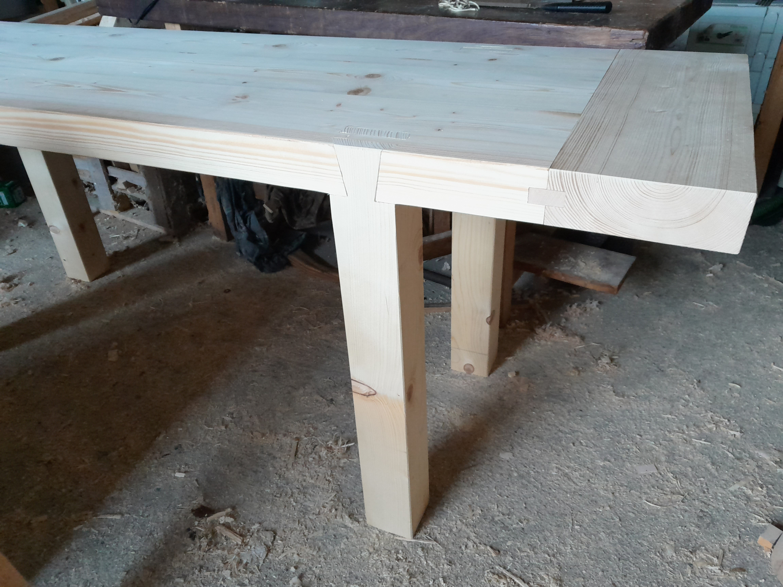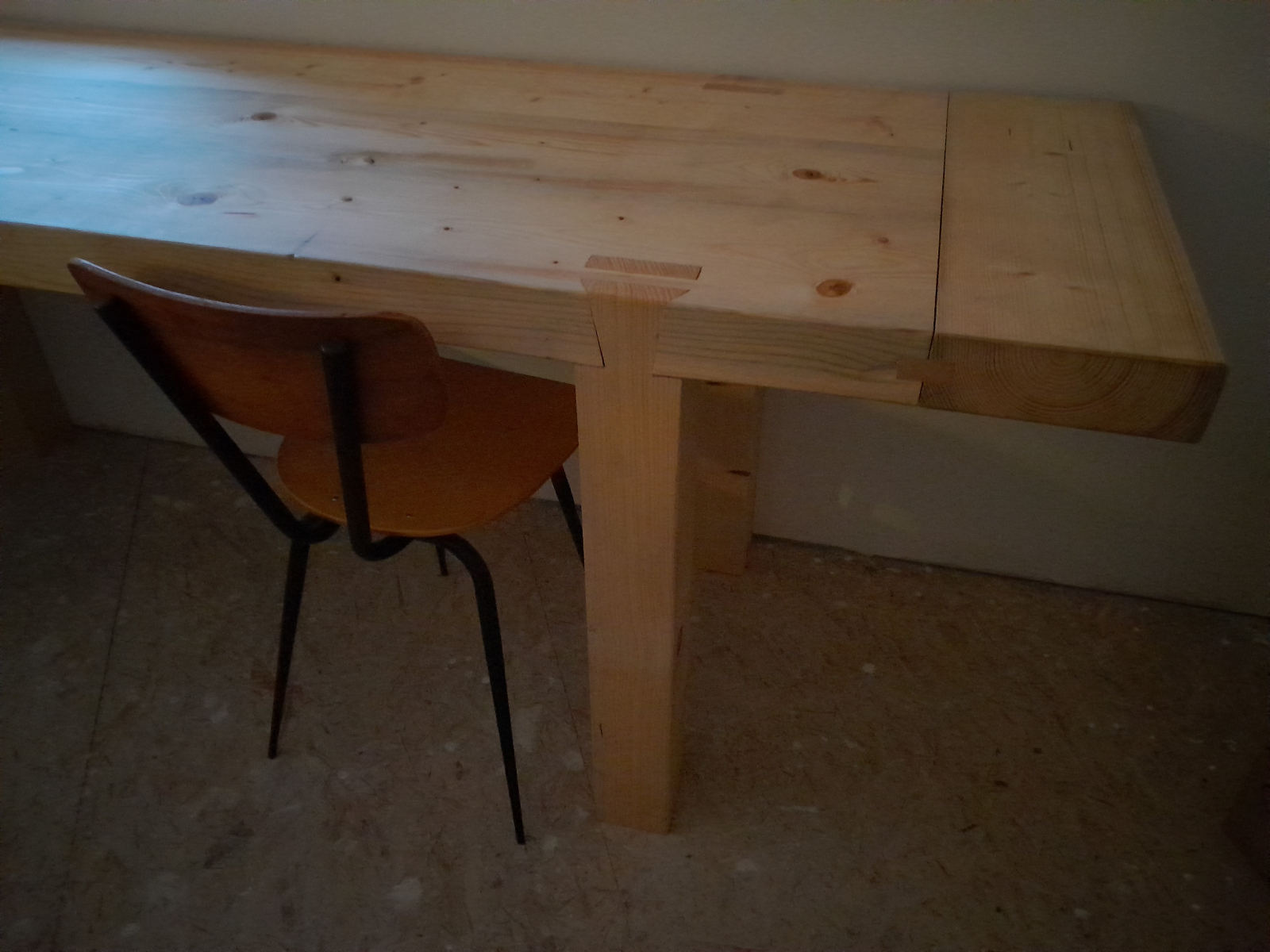 Pour le prototype, j’ai choisi de le faire en sapin. Le résultat est à la hauteur. En attendant la première commande d’une table absolument exceptionnelle.