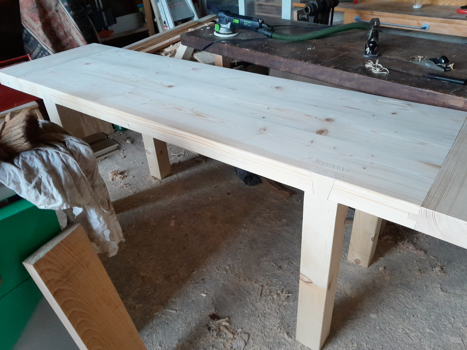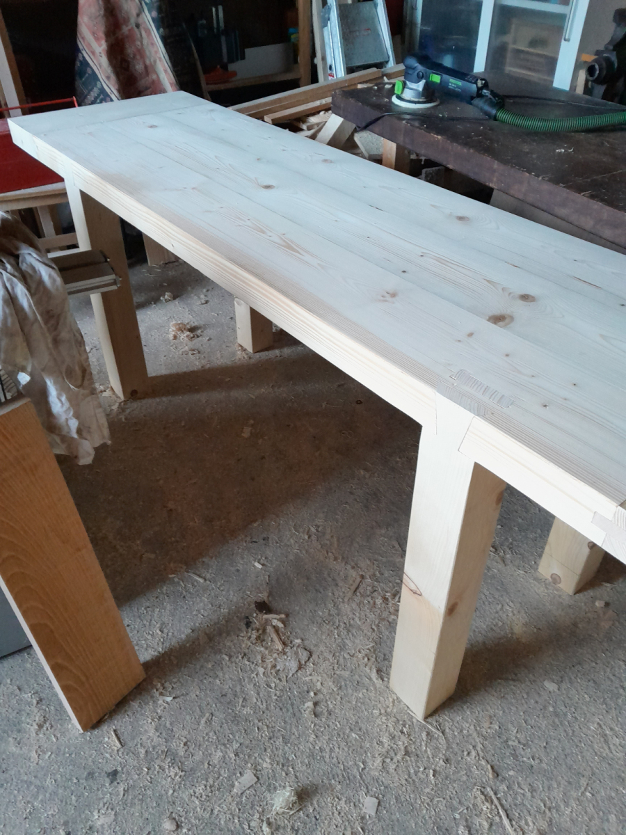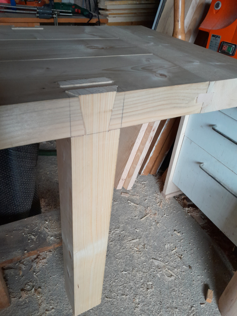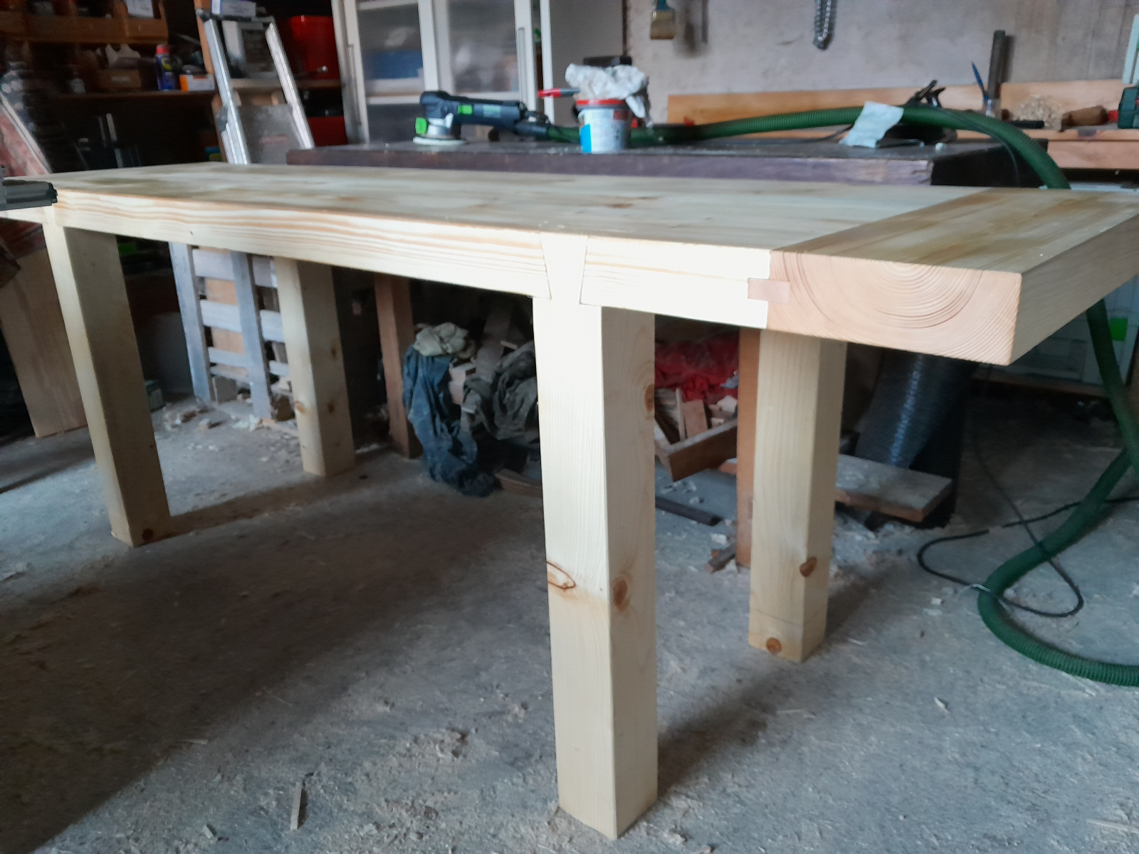 Pour le prototype, j’ai choisi de le faire en sapin. Le résultat est à la hauteur. En attendant la première commande d’une table absolument exceptionnelle.